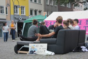 Leider leider leider war die Stimmung im Stadtrat weit davon entfernt, das alles einzusehen. Im Gegenteil, man nannte die Kids, die draußen und drinnen brüllten und skandierten nur verächtlich, die Krakeler…. dabei bewiesen diese äußerste Geduld, wenn man bedenkt, dass die werten Herren und Damen des Stadtrates nach vier Stunden Sitzung immer noch bei Punkt 3.1.9 (von 26) waren und über Hubschrauberlandeplätze oder Gewerblicher Nutzung in Deutz stritten. Irgendwann begannen sie von der Zuschauertribüne zu schreien, man solle über den Klimanotstand reden….