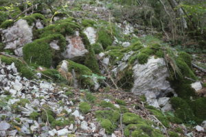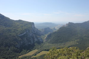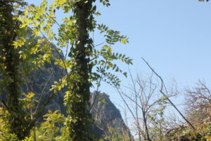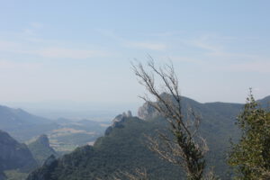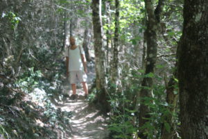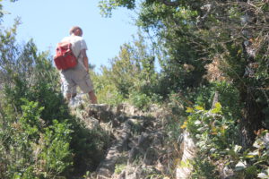 Zu guter Letzt wollten wir noch eine Tour aus dem Reiseführer ausprobieren, weil mir der Name gefiel. Gorche de la Frau. Da hatten wir beide absolut nix mitgenommen an Wasser oder Proviant, und ich nach 10-15 Minuten schon keinen Bock mehr. Es war viel zu steil, also wirklich mega krass übersteil – sodass ich es teilweise einfacher fand auf allen vieren das zu machen… und dann ging es in Serpentinen durch Wald und Gestrüpp. Die Route war irgendwie nicht mehr in Benutzung, was auch so ein Grund war, warum ich nicht ganz so scharf drauf gewesen bin, wobei es ja eigentlich auch spannend war und auch ein ganz klein wenig unheimlich. Wir mussten über umgestürzte Bäume und uns echt umsehen nach den Markierungen. ….