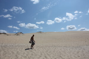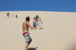 Da trafen wir auch auf die sogenannten Wanderdünen …. und auf MASSEN von Menschen. Das liebe ich ja … wenn mensch nirgends, wirklich nirgends einen Parkplatz findet, außer auf so mega übersandigen Böden, wo der Dicke dann fast drin stecken geblieben wäre. Aber hey. So hab ich mal echte Wüste erlebt. Schon beeindruckend. Aber auch langweilig. Und heiß war es. (SOMMMER EY XD) Ein Mann hatte einen Kreislaufzusammenbruch. Das war kurz ein wenig zu aufregend für mich. Aber es ging ihm schnell wieder besser, nachdem der Freund von Harti mal die glorreiche Idee äußerte, dem Mann Wasser zu geben und irgendwie mit Kleidung und Menschen Schatten zu erzeugen.