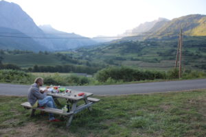 Eigentlich war der Plan, in die Pyränen zu fahren. Weshalb genau wir dann noch kurz an den Atlantik vorher sind, weiß ich nicht, aber SO ist Harti eben noch nie in den Süden gefahren. Immer mal wieder was Neues machen. Also war schon gut. Die Atlantikküste war aber echt nicht sooooo der Hit. Alles einfach teuer und voll. Mit meinen Minimal- Komfort- Vorstellungen hing das bestimmt nicht zusammen…. (am besten ganz alleine, direkt am Wasser mit Klo und natürlich alles für lau. Und bloß nicht so viele nervige Touristen, wie wir.)