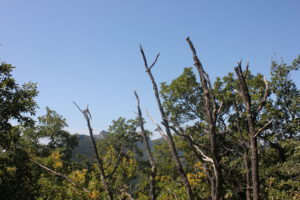Harti spornte mich an, also kroch ich weiter diesen Berg hoch und irgendwann als er dann keine Lust mehr hatte, weil die Markierungen irgendwie aufhörten, und wir auch nur durch relativ langweiligen Wald gestapft sind, hatte es mich dann doch gepackt und ich ermutigte ihn nun wiederum, noch ein- zwei Serpentinen und dann noch ein bisschen. Bis wir wirklich irgendwann völlig verloren auf einer Lichtung umher stolperten. Durch die Bäume konnte man erkennen, dass sich dahinter so etwas wie eine Schlucht hätte befinden müssen. Ich hielt meinen Impuls, bis an den Rand zu schauen, aber zurück… und dann erklärten wir diese Tour für beendet. Außerdem hatten wir echt Hunger und Durst, nach gefühlten zwei Stunden Aufstieg.